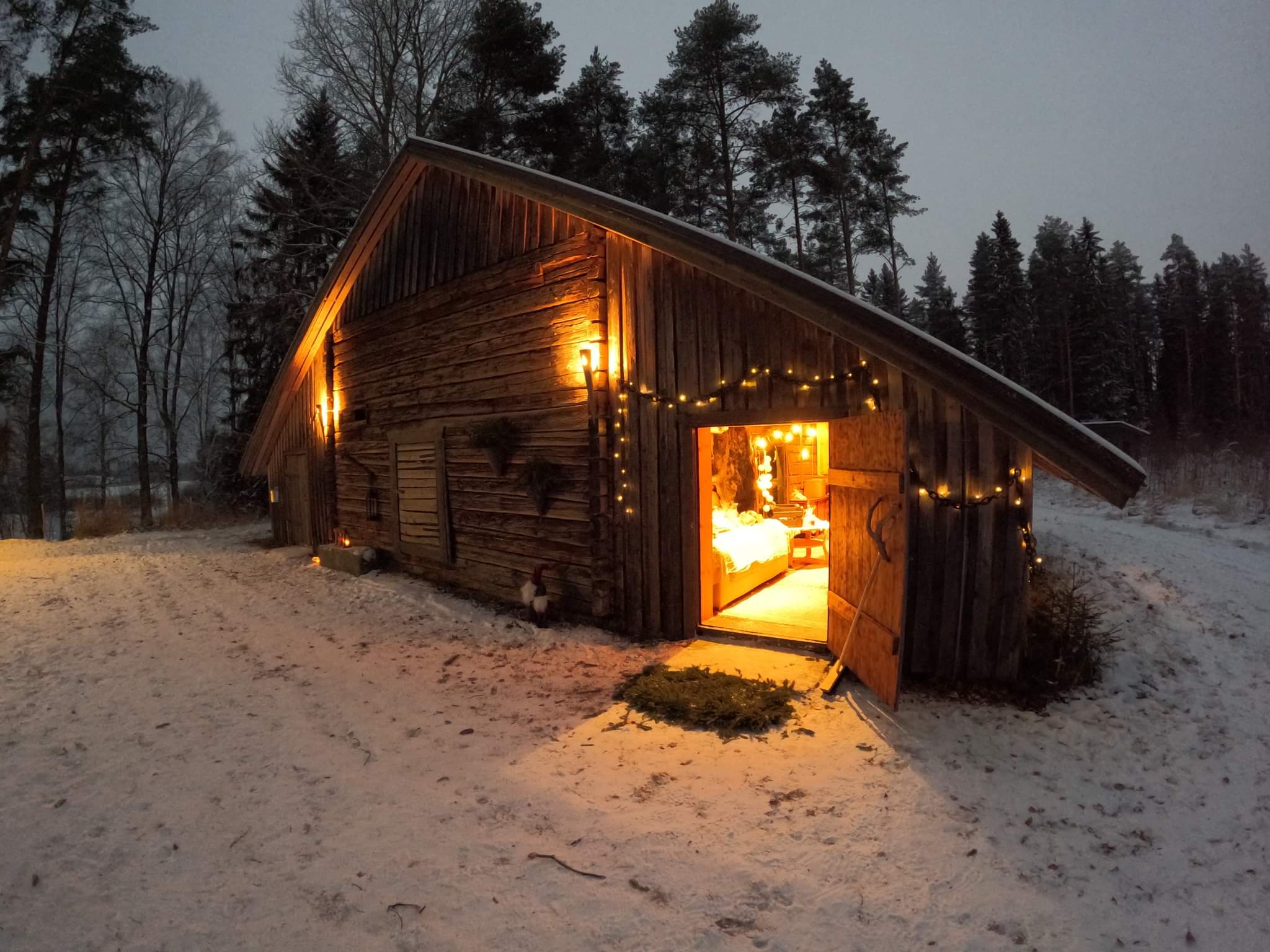 Tilalla toiminut vanha riihi on nykyisin tapahtumien järjestämispaikkana Varpaniemen tilalla.